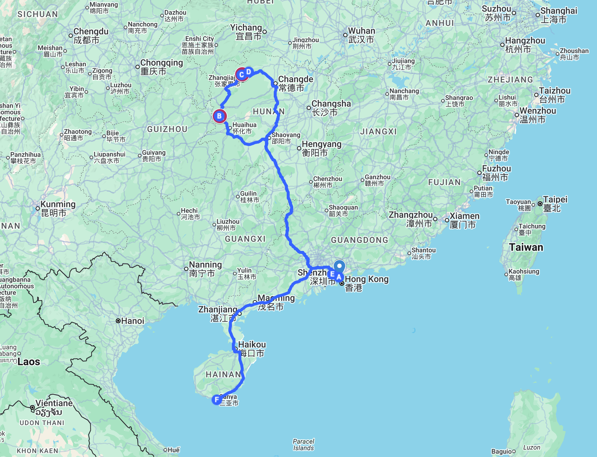 TRASA: Shenzhen – Fenghuang – Zhangjiajie (góry Avatar) – Hongkong – Shenzhen – Hainan – Sanya